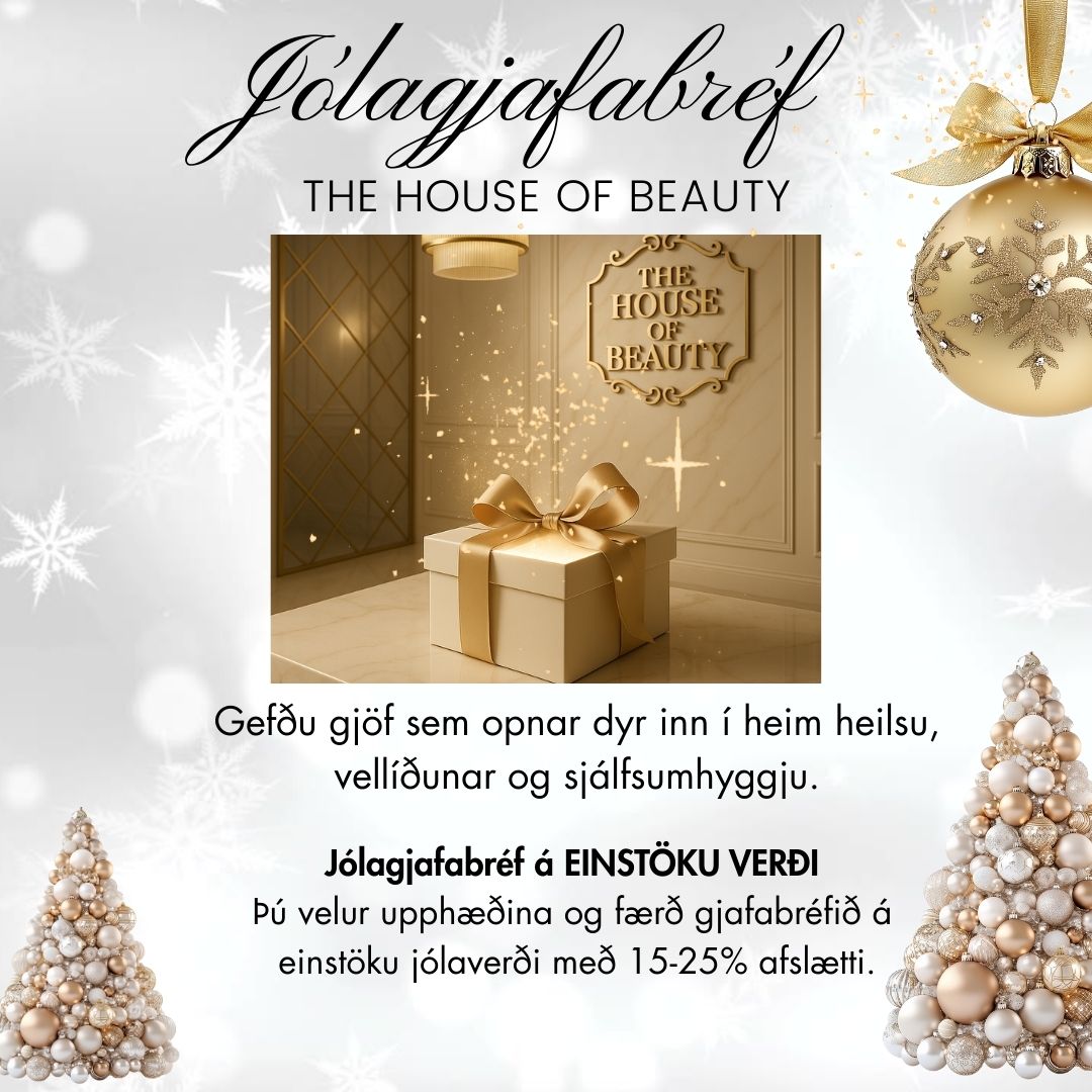 Gjafabréfið gildir í allt að þrjú ár og er hægt að nota upp í allar meðferðir og meðferðapakka hjá The House of Beauty.